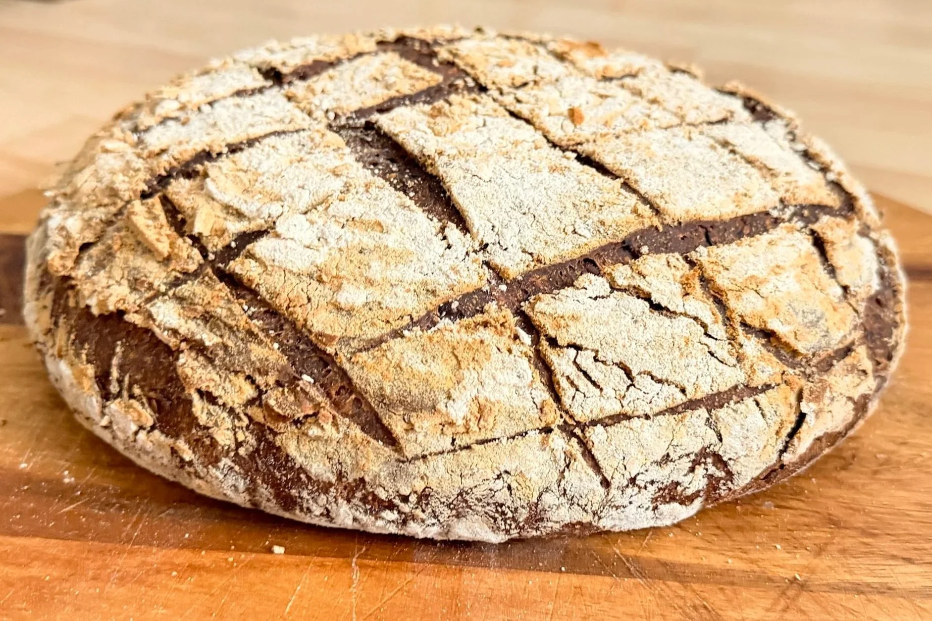 And yet, over these ten years, I’ve never stopped refining it. Adjusting the flours to give more structure, coaxing more flavour from the long fermentation, balancing a crisp, golden crust with a tender, open crumb. This new version is the best it’s ever been: easier to work with, more resilient, and even more delicious, the kind of loaf that fills the house with that unmistakable sourdough aroma and disappears in suspiciously neat slices.